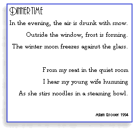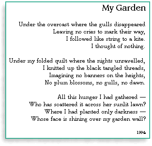 And here's a JUMP to the previous page. More coming, I swear. Perhaps Laura will add some recipes or writings. Since she feeds, tends, weeds, cleans, and pleases all of us, it's possible she won't find time.